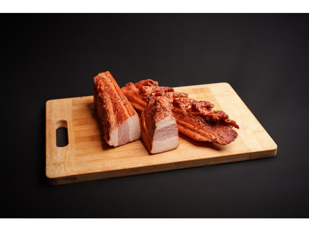 Zařezané šrůtky boku sypané kmínem a zauzené.